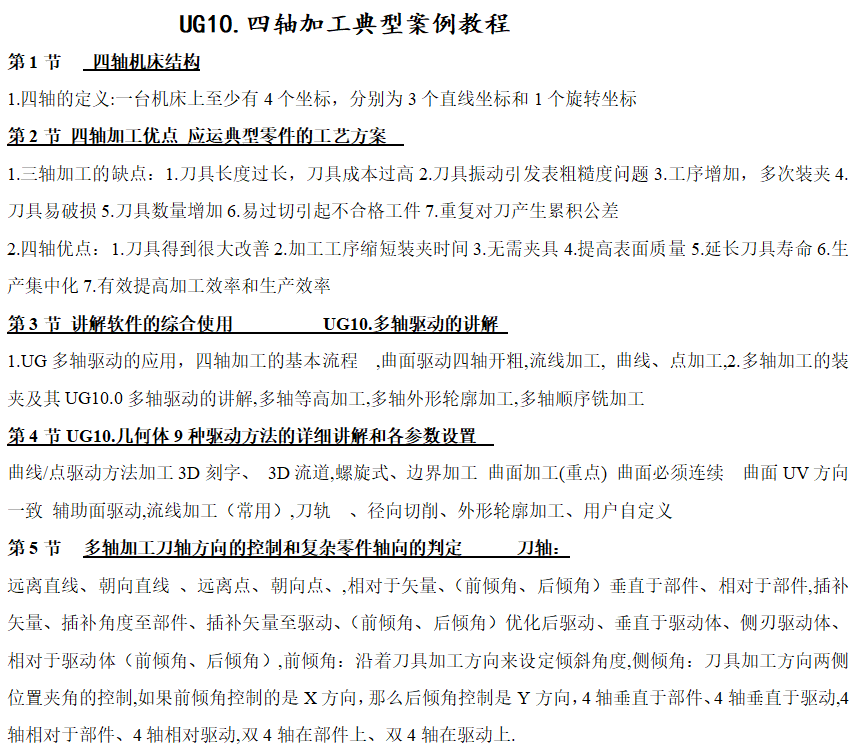 深入学习UG或MC,四轴或五轴刀路设计;(可自由选择)了解各种钢材的性质以及各种刀具的使用:对市场上的各种类型五金零件产品针对性的实例学习。(学完到达工厂2年工作经验)