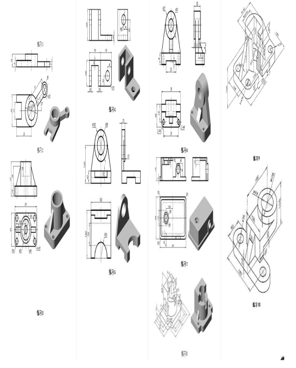 二 建模模块学习目标:学会看三视图,熟练使用画产品常用命令与方法,为后期3D分模打好基础。