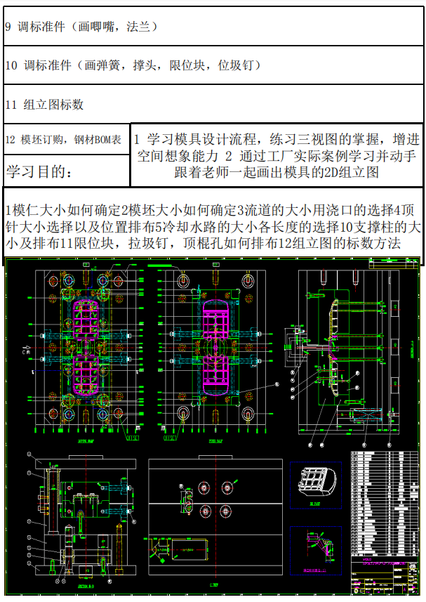 熟悉CAD软件及机械制图;熟悉UG軟件的应用;了解模具设计的流程;学习深入了解模具加工整体工艺与设计外挂的应用;培养能独立完成整套模具设计,符合企业需求,到达工厂2年经验水平为目标。